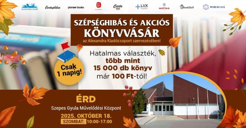 Ismét Érdre érkezik az Alexandra Kiadócsoport szépséghibás és akciós könyvvására október 18-án.