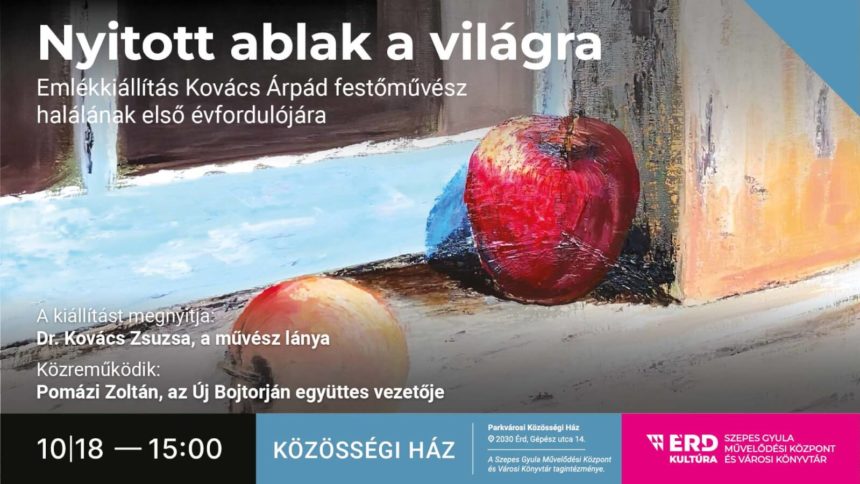 Nyitott ablak a világra címmel emlékkiállítás nyílik október 18-án, 15:00 órai kezdettel a Parkvárosi Közösségi Házban Kovács Árpád festőművész halálának első évfordulójára.